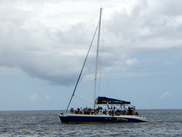 As we neared Soufriere we were overtaken by two of the Carnival party cats both of which were fully occupied with locals and blaring out loud music.